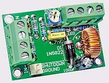 This tiny switching regulator board outputs 1.2-20V from a higher d.c. supply at currents up to 1.5A. It’s small, efficient and cheap to build with many handy features including a very low-drop out voltage, low heat dissipation and electronic shutdown.s