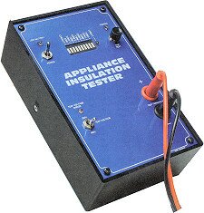 This item of test equipment can help you check that your mains-powered tools and appliances are safely insulated. It does this by applying 250V or 500V DC and measuring the resistance between mains ‘live’ and neutral to the earth (ground) on a 3-pin plug, or chassis of a suitably earthed appliance. Moving dot bargraph display shows insulation resistance in ten steps from 707kΩ to 16MΩ : too low a resistance (<1MΩ ) is a symptom of a potentially dangerous insulation fault.