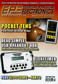 V2 PC Scope - Part 2 - rounding off our PIC and PC controlled hobby oscilloscope. Techno Talk - the pitfalls of eco-friendly lighting. PIC n MIX - single wire communication protocol interface for PICs. Using MPLAB Part 4. The Power of Mechatronics (Part 4): adding speech to your application. Practically Speaking - using diodes successfully. Net Work - the Internet column describes how to download our free source codes. Circuit Surgery - Linear Voltage Regulators and Capacitors (Part 2).