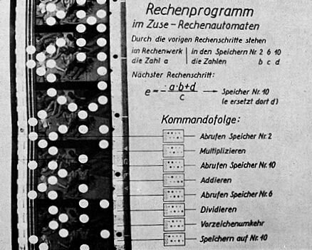 | Konrad Zuse referred to programs as Rechenplans (calculating plans). The Z4 made use of a unit called a Planfertigungsteil (program construction unit),(8) which was used to produce punch tapes containing instructions for the Z4 in a very easy way. For this reason, it was possible to learn the programming of the Z4 in as little as three hours. | (8)Konrad Zuse also planned a Planfertigungsgerät (program translation unit), which was to be an extended version of the Z4s Planfertigungsteil (program construction unit). Konrad Zuses idea was to write programs in a symbolic way, like the notation in mathematics, and to then compile these high-level programs into the Z4s machine language. | |