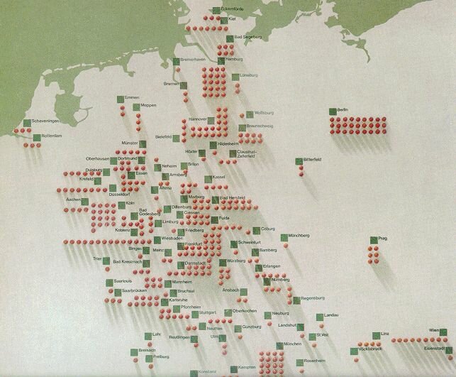 | Fig.87 (Left). A map showing computers sold in Germany by the Zuse KG from 1949-1969. The Zuse KG sold about 250 computers from 1949 to 1969 of a value of ca. 100 Million DM. Fig.88 (Right). A Zuse KG advertisment from 1961. | |