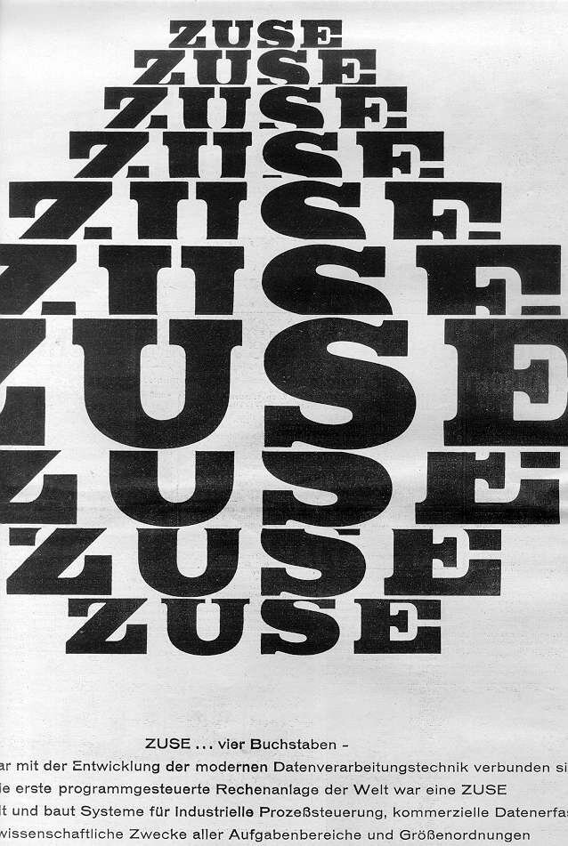 | Starting in 1962, the Zuse KG implemented much effort to control production in factories using process computers. This was very interesting to a steel company called Rheinstahl, and the Zuse KG was bought by Rheinstahl in 1964. In 1965, BBC (Brown Boveri and Cie), which produced power plants, electric equipments, and so forth bought the Zuse KG from Rheinstahl. Finally, in 1967, the Zuse KG was bought completely by the Siemens AG. In 1969, the Zuse KG logo was deleted by the Siemens AG and Konrad Zuse left the Zuse KG. | |